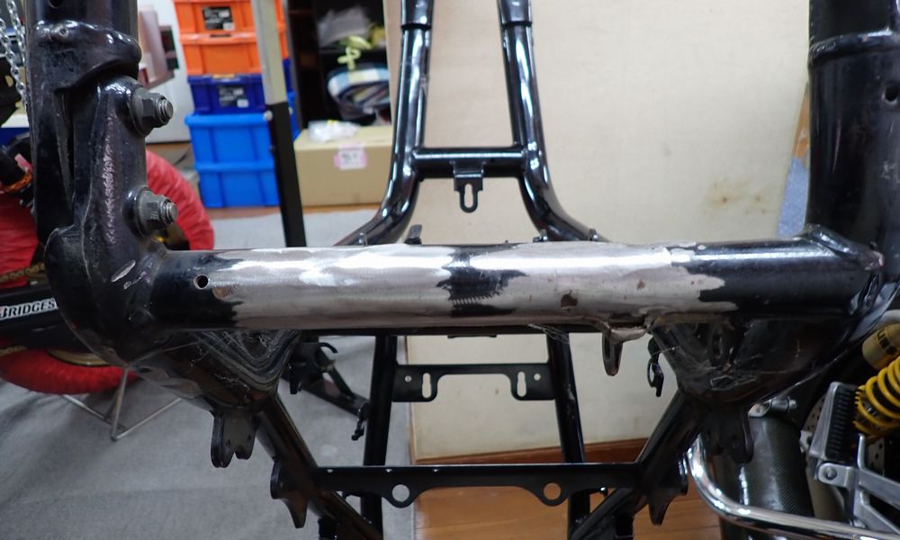 随分と前から構想はあったものの、なかなか進まずにいた『コンプリートマシン』の製作ですが、少しずつではありますが、準備は進めています。フレームの準備センタースタンド用のステーを切除したフレー…